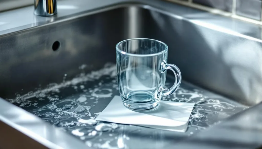 מעמידים את הדף על הכיור, ממלאים כוס מים והופכים אותה. זה יוצר סביבה אטומה שמונעת מהגזים לעלות. חשוב לציין שעמידה זו גם מספקת לחות לסביבה, דבר המועיל במיוחד בעונות חמות. למי שמעוניין, אפשר גם להשתמש בנייר סופג במקום הדף. בנוסף, ההמלצה היא לשמור על תפריט מסודר של מים בכיור לפני העזיבה, לשיפור האטימה.